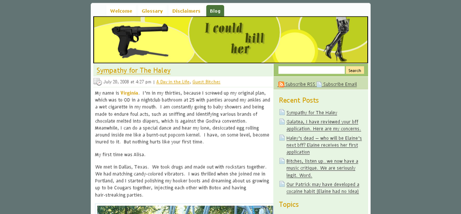 I Coul Kill Her is a blog about two best friends who seem a bit at odds with each other. It’s witty, interesting and funny. So far for them, I’ve: