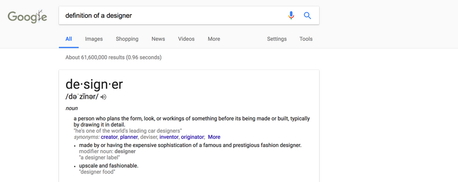 If you google the question “What is the definition of a designer”, you’ll find that it says a designer is “a person who plans the form, look, or workings of something before its being made or built, typically by drawing it in detail.”.